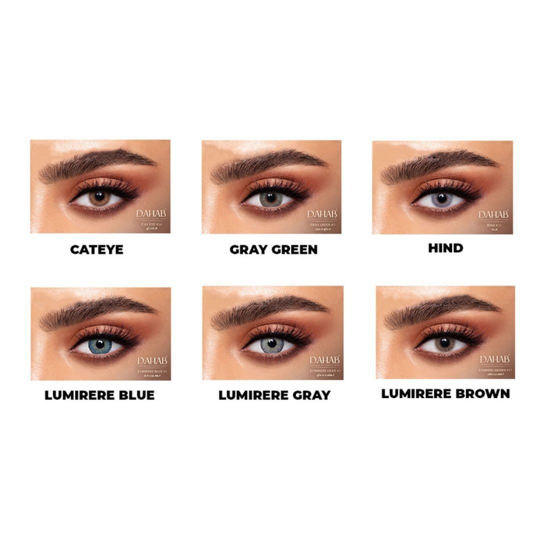 Dahab Gold contact lenses offer a captivating array of colors, including Cat Eye, Gray Green, Hind, Lumiere Blue, Lumiere Gray, Lumiere Brown, Lumierek Green, Sun Kiss, Solitaire, Swarovski etc. Perfect for enhancing your natural beauty or unleashing your inner glamour.