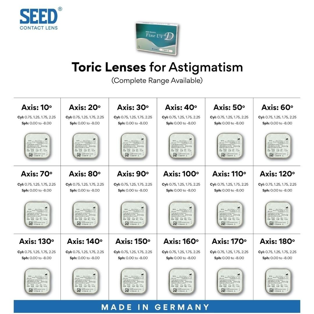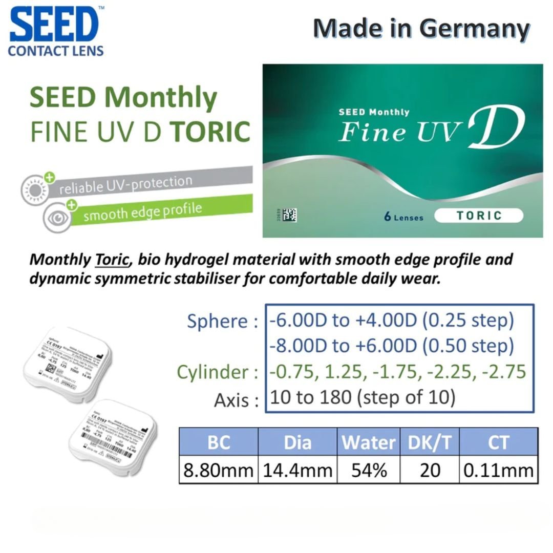 Introducing Seed Fine UV D Transparent Toric Contact Lens for Astigmatism, your go-to choice for unparalleled vision clarity and comfort. Crafted with precision in Germany by Woelk, these toric contact lenses redefine excellence in eye care.